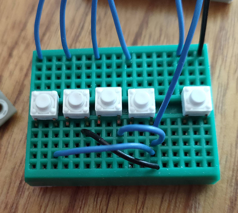 버튼 연결은 4번부터 8번까지 총 5개입니다. 버튼 반대쪽은 GND에 연결합니다.