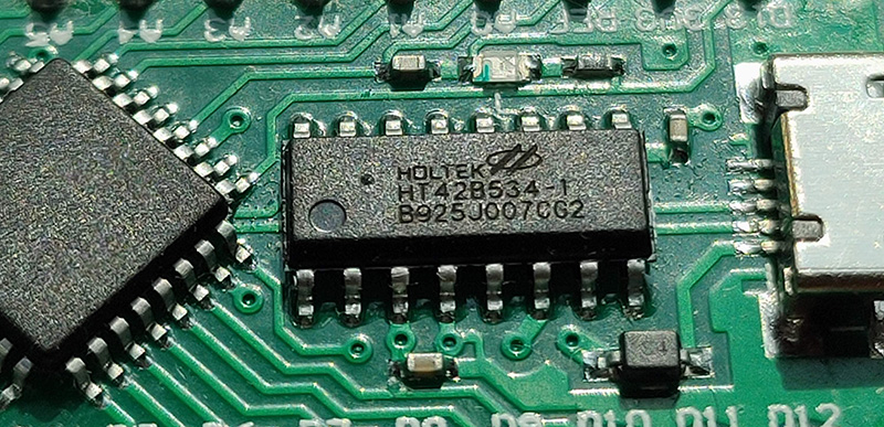 아래의 홀텍 USB 칩입니다. 나노 클론에서 많이 쓰는 CH340G칩이 아니네요. 홀텍칩은 따로 USB 드라이버 안 잡아도 윈도우에서 자동으로 잡히네요.