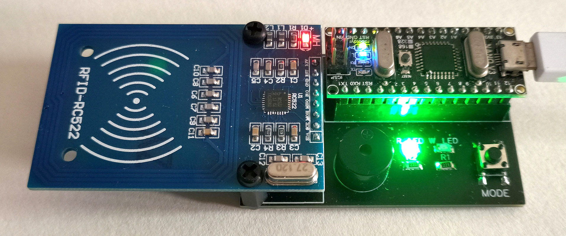버튼 누르면 읽고 쓰기 모드가 변경되고 카드 읽을 때마다 부저에서 삐 소리 나게 만들었습니다.
