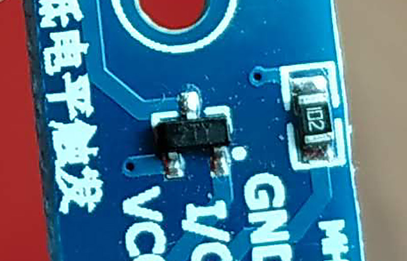 왼쪽에는 그냥 부저만 있고 가운데 있는게 부저 모듈입니다. 둘 다 passive 이지만 모듈에는 “2TY” 마킹 되어 있는 S8550 칩이 들어가 있어서 이게 소리를 크게 만듭니다. 삐소리를 3초 이상 듣고 있기 힘듭니다.