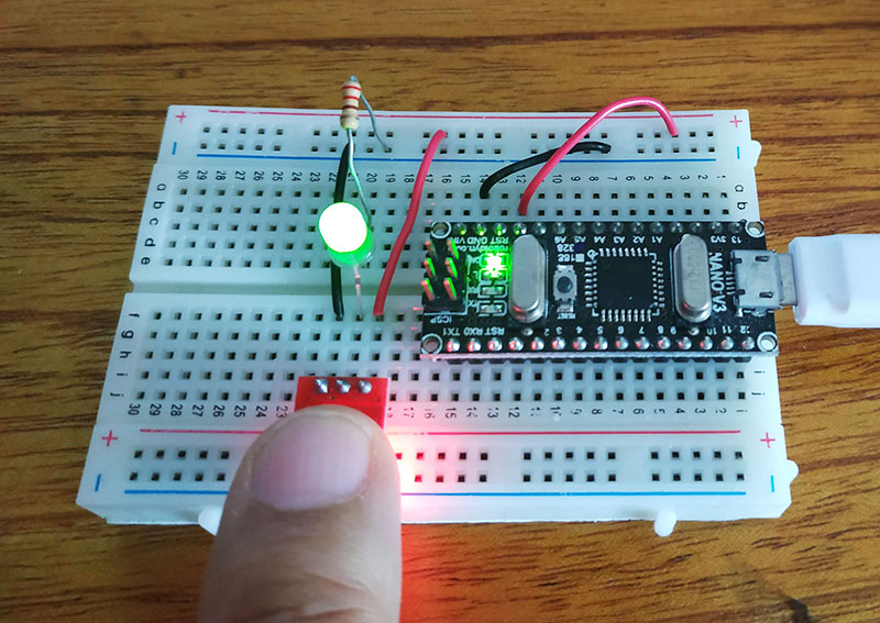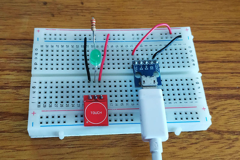 아래 사진처럼 터치 모듈만으로도 사용이 가능합니다. 터치하면 out쪽이 HIGH로 나옵니다.