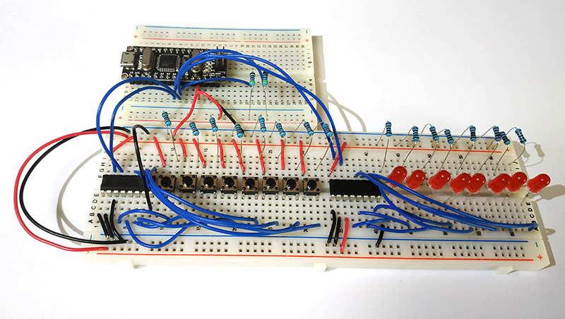 하나의 칩이 8개의 input/output이 가능합니다. 8개의 칩 연결이 가능하니 총 64개의 입출력이 가능하네요.