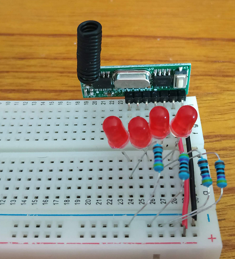 The output: 4 channel CMOS level signal Corresponding to the remote control ABCD 4 buttons.